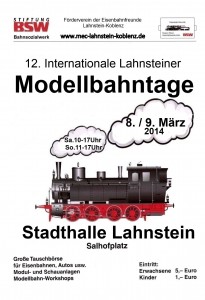 Plakat 2014-Internat. Lahnsteiner Modellbahntage mit Verweis auf Homepage